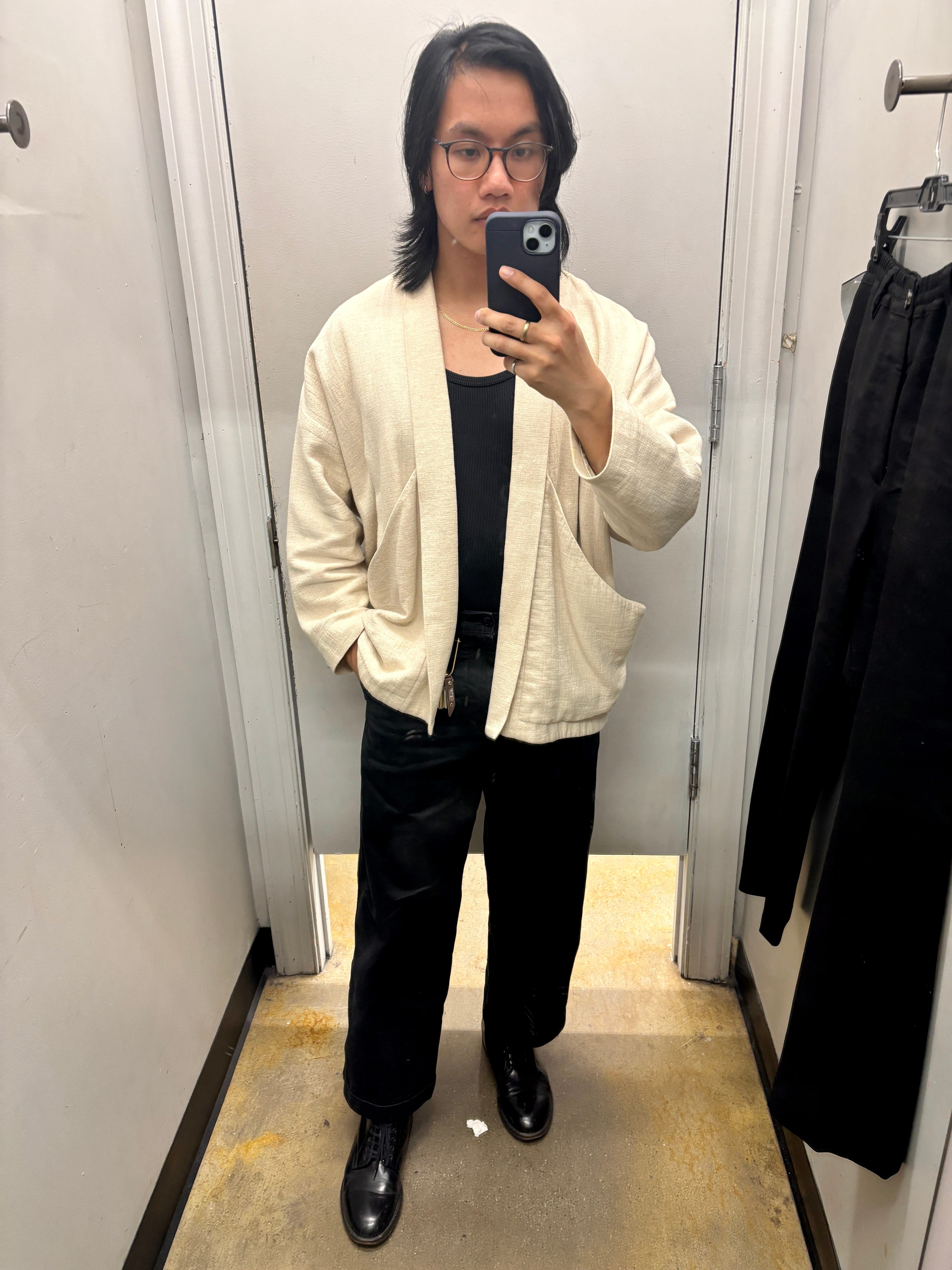 He sits down beside me, crossing his legs and resting his arms along the back of the bench. We share a moment of silence.