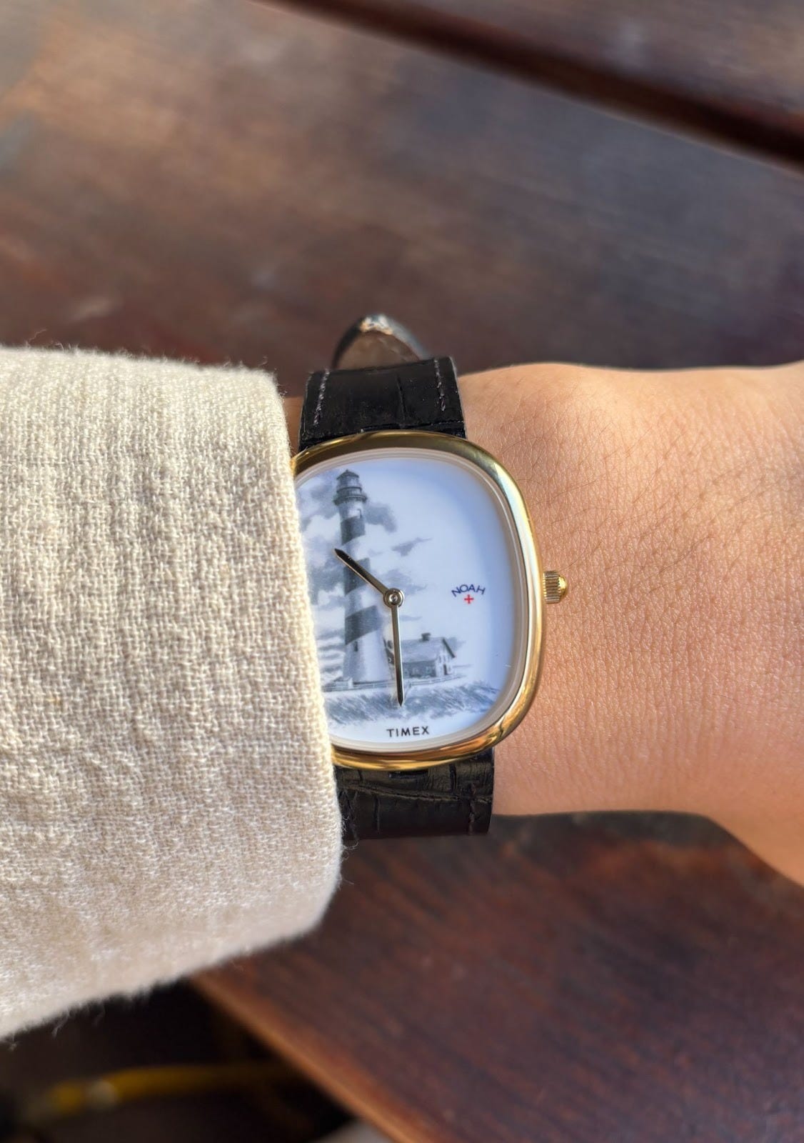 For weeks prior, I’d show my friends this watch. How I love the proportions, the gold-plated dial, the black leather strap, how I love everything about this watch but that damn cheesy lighthouse.